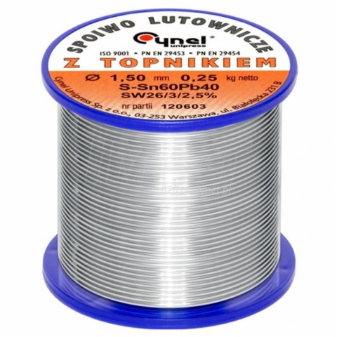 Cyna 250g FI 1,5mm z topnikiem Sn60Pb40 CYNEL