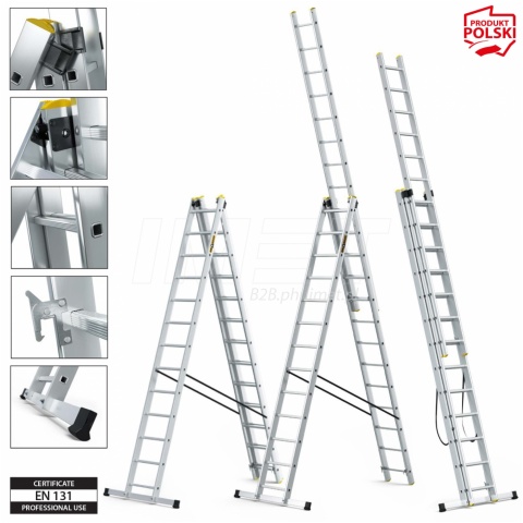 Drabina 3x 9 szczebli DW3 tłoczone