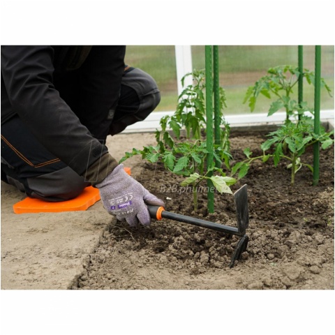 - Z jednej strony klasyczna motyczka do spulchniania i przekopywania gleby, z drugiej - trójzębne pazurki, idealne do napowietrzania i rozbijania zbitych grud ziemi