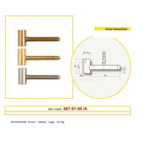 Część górna zawiasy wkręcanej drzwiowej, okiennej montowane w skrzydle okna, drzwi stolarki drewnianej.