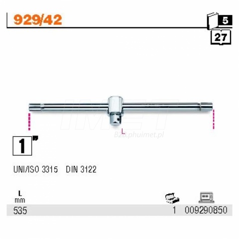 - Pokrętło z kwadratem Beta 929/42 z przesuwanym zabierakiem 535 mm