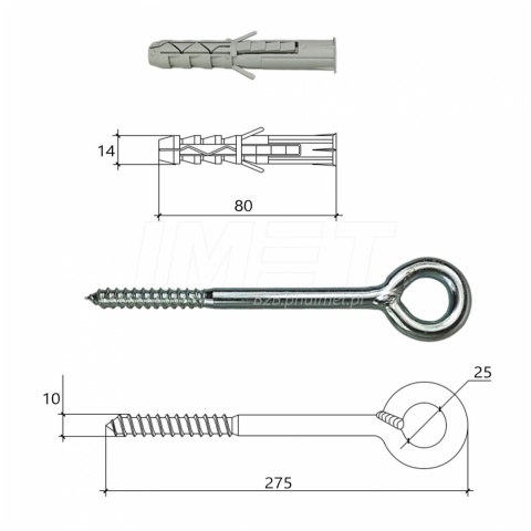 - Wkręt z hakiem oczkowym wykonany ze stali ocynkowanej (ochrona antykorozyjna)