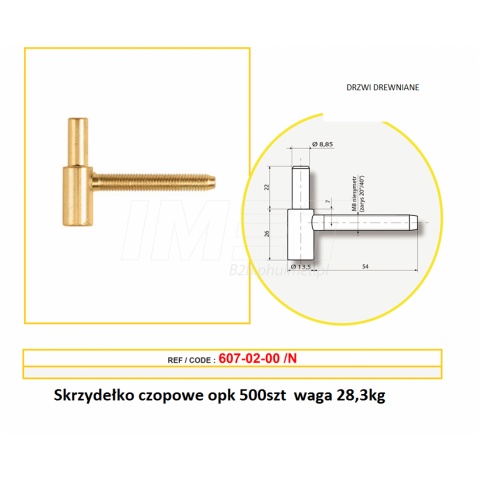 Część dolna zawiasy wkręcanej drzwiowej, okiennej montowane w ościeżnicy drewnianej.