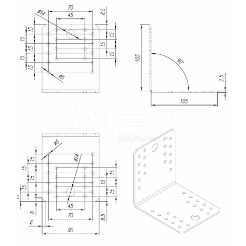 | Kątownik ten służy do mocowania drewna z drewnem, betonem lub stalą. Posiada on różnej wielkości otwory co zwiększa jego uniwersalność i umożliwia montaż różnych rodzajach łączników trzpieniowych. Montaż możemy wykonać przy pomocy: - gwoździ pierścieniowych - śrub do drewna - typowych rozmiarów wkrętów do drewna - kotw do betonu Tagi: technika zamocowań, kątownik, prace ciesielskie, prace budowlane, łącznik, montaż, mocowanie, domax | |