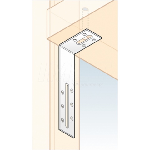| Kątownik ten stosuje się do montażu okien oraz płyt kartonowo-gipsowych (ścianki działowe). Zawiera on podłużne otwory które służą nie tylko do regulacji ale też jako dylatacja. Otwory te również mogą służyć do montażu wstępnego, natomiast montaż końcowy (docelowy) wykonujemy przy pomocy otworów okrągłych. Jego zaletą jest możliwość korekty położenia dwóch lub więcej elementów przed ich dokładnym przymocowaniem. Doskonale sprawdza się przy montażu skomplikowanych lub precyzyjnych konstrukcji.