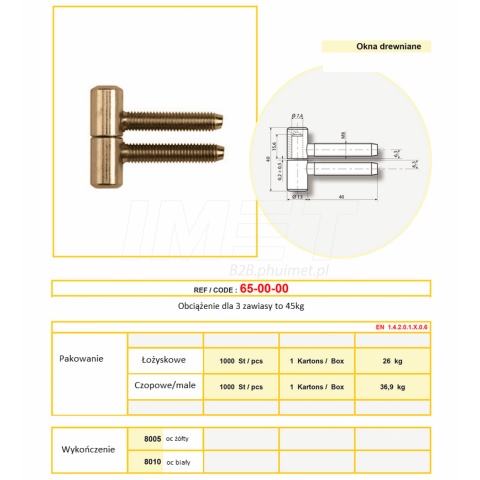 | Jednostka sprzedaży | komplet - zawias 1 szt. ( góra + dół ) |