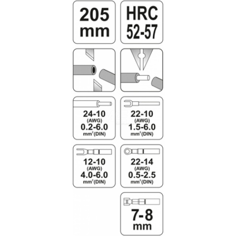 Szczypce YT-2270 tabela zastosowania: