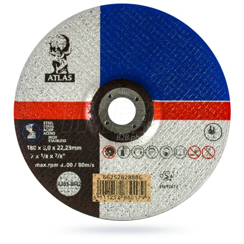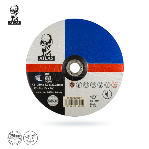 Tarcza przeznaczona do cięcia metalu do stosowania ze szlifierkami kątowymi 230mm. Tarcza do metalu ATLAS 66252828887 posiada średnicę 230mm i grubość 3,0mm. Średnica otworu tarczy wynosi 22,23mm. Tarcza posiada certyfikat OSA (Niezależna organizacja certyfikująca najlepszych na świecie produktów materiałów ściernych. Jest gwarancją najwyższych standardów bezpieczeństwa, a tym samym jakości dla użytkowników produktów).