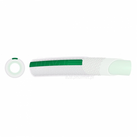 - Wykonany z wysokiej jakości miękkiego PVC, dodatkowo zbrojony oplotem dla zwiększonej wytrzymałości i odporności na ciśnienie robocze