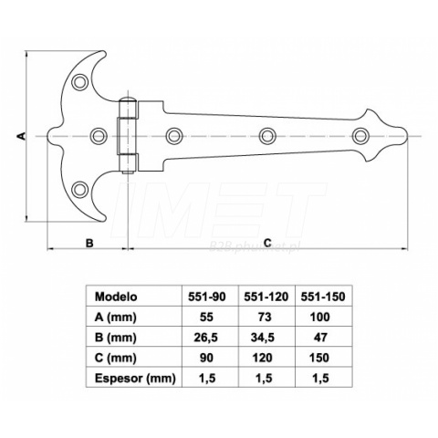 Zawias okiennicowy L-120mm czarny MOD 551 AMIG