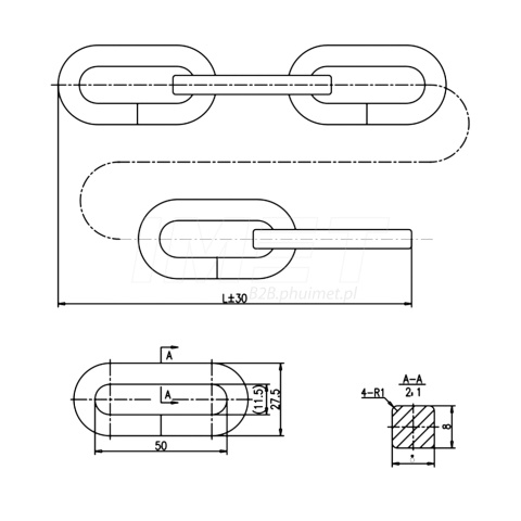 Ogniwo z drutu kwadratowego ocynkowanego(jarzmo kłódki max 11,5mm)