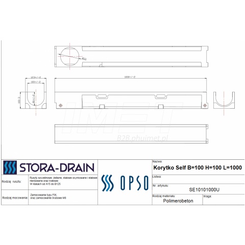 Klasa: B125. Wysokość: 100 mm. Szerokość: 100 mm, długość: 1000 mm. STORADRAIN