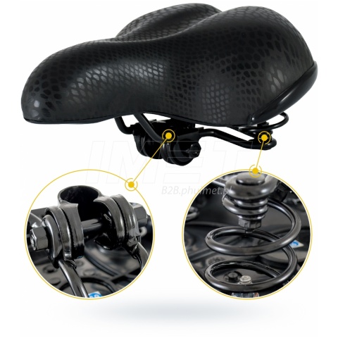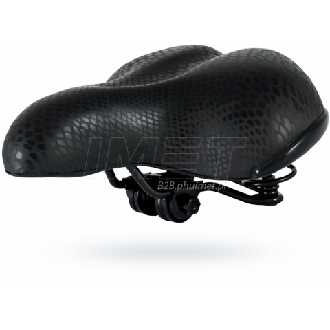 Bardzo wygodne siodełko rowerowe. Nadaje się zarówno do jazdy po lesie, jak również i po mieście. Specjalne wypełnienie piankowe i sprężyny zapewniają duży komfort podczas jazdy. Stylowe siodło pokryte jest skórą syntetyczną wzór "panterka". Jest kompatybilne z każdym typem roweru. Posiada element odblaskowy dla poprawienia widoczności. W komplecie jarzmo do mocowania.