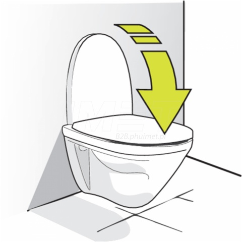- Mechanizm wolnego opadania zapewnia ciche i bezpieczne zamykanie deski i pokrywy