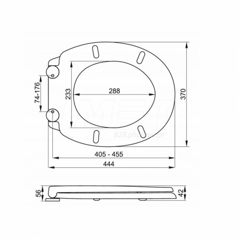 - Mimośrodowy montaż pozwala dopasować deskę do większości misek toaletowych