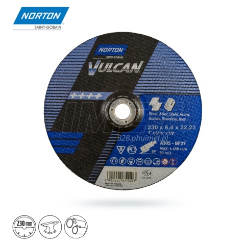 Tarcza do szlifowania 230x6,4 metal/inox VULKAN 66252925529