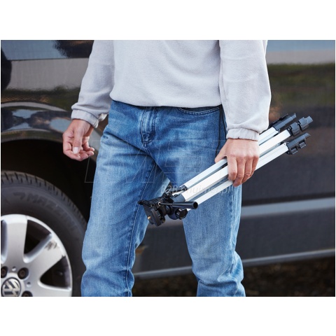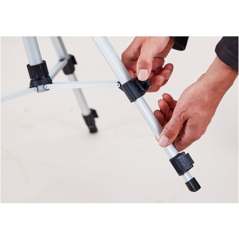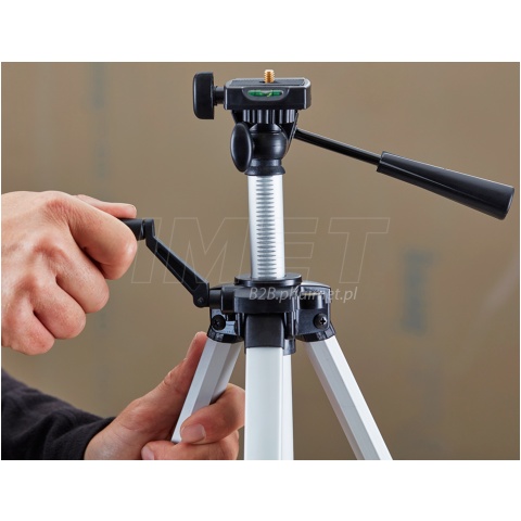Aluminiowy statyw teleskopowy do urządzeń laserowych dalmierzy, aparatów fotograficznych, kamer itd. Mocowanie za pomocą śruby 1/4''. Posiada regulowaną głowicę z libelką do poziomowania. Kolumna podnoszona korbką. Lekki a zarazem bardzo stabilny pozwala na bezpieczne ustawienie przyrządu pomiarowego nawet w najtrudniejszych warunkach.
