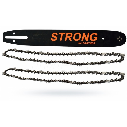 Prowadnica wykonana jest z bardzo twardego materiału odpornego na ścieranie i wysoką temperaturę, jaka powstaje w czasie pracy pilarką łańcuchową. Sprawdzają się w najtrudniejszych warunkach nie ulegając uszkodzeniu. Idealnie przenoszą moc pilarki na wydajność cięcia. Do zestawu dołączono dwa łańcuchy.