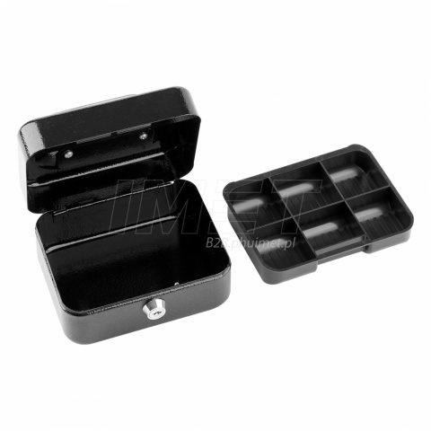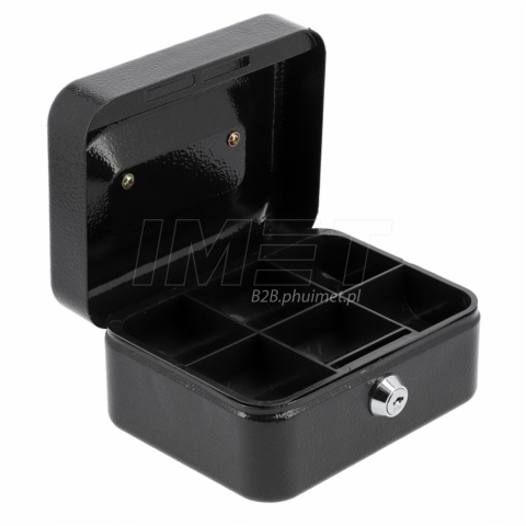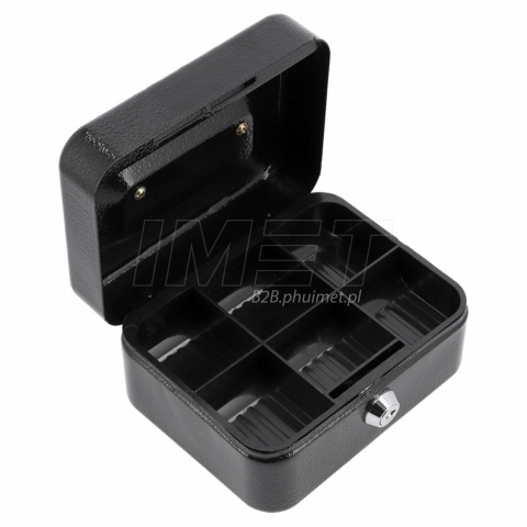 Wykonana z wytrzymałej blachy stalowej, zapewnia odpowiedni poziom bezpieczeństwa, a zamknięcie na klucz chroni zawartość przed niepowołanym dostępem. Klasyczny czarny kolor i estetyczne wykończenie sprawiają, że kasetka prezentuje się profesjonalnie.