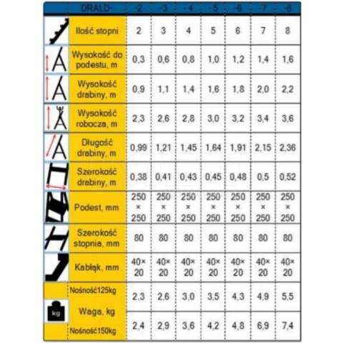 | Ilość stopni: | 6 (5 szczebli + podest) |
