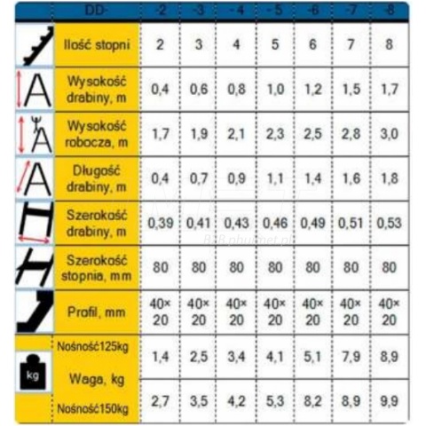 | Grubość drabiny po rozłożeniu: | 16 cm |