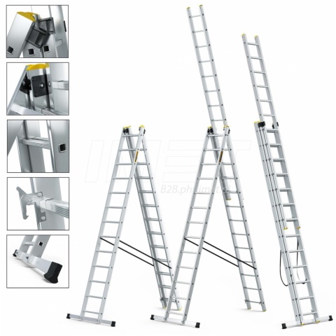 Drabina aluminiowa trzyczęściowa tłoczona 3x8 szczebli do 150kg