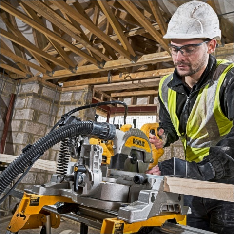 Profesjonalna pilarka ukośnica o mocy 1800W napędzający tarczę 216mm z maksymalną prędkością obrotową wynoszącą 6300obr./min. DWS777 ma możliwość ustawiania kąta cięcia w zakresie 0-48° w lewo oraz ukosu 0-50° w prawo i lewo. Producent urządzenia zastosował swój innowacyjny system wyznaczania linii cięcia XPS, nie wymaga kalibrowania, dodatkowo pełni funkcję oświetlenia miejsca cięcia. Dioda LED oświetla tarczę, natomiast tacza rzucająca cień na materiał wyznacza linię cięcia. Aby zachować czystość w miejscu pracy maszyna posiada możliwość podłączenia do odkurzacza. Podczas transportu głowicę możemy zblokować dla łatwiejszego przeniesienia z jednego do drugo miejsca.