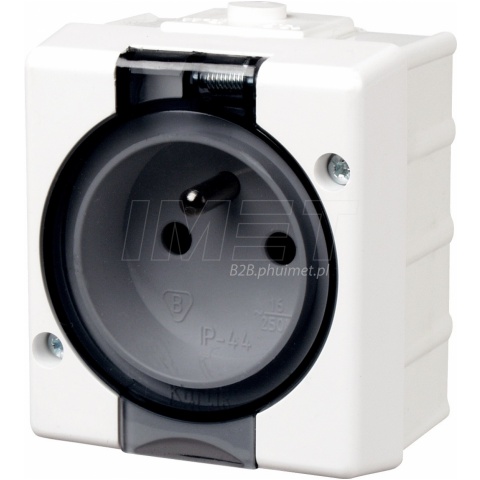 Gniazdo pojedyncze hermetycz (klap biała) LOGO ram
