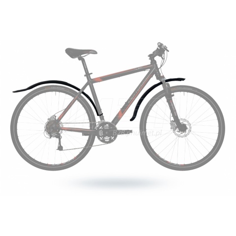 Błotnik tylny posiada szeroką płetwę dla zwiększenia ochrony przed zabrudzeniami oraz umieszczony na niej element odblaskowy poprawiający widoczność i bezpieczeństwo rowerzysty.