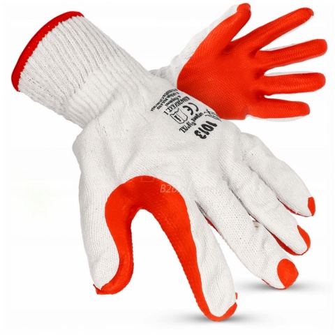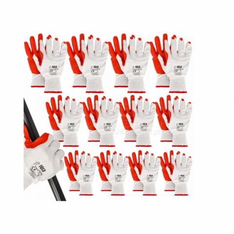 Rękawice brukarskie URGENT 1013 w rozmiarze 10 to zestaw 12 par wytrzymałych rękawic roboczych, przeznaczonych głównie dla brukarzy i osób wykonujących prace wymagające ochrony dłoni. Wykonane z dzianiny i powlekane gumą, odporne są na ścieranie, przetarcia i rozdarcia, a wzmocniona część chwytna zapewnia pewny uchwyt bez ograniczenia sprawności palców. Zakończone ściągaczem, dobrze trzymają się dłoni i nie zsuwają się podczas pracy.