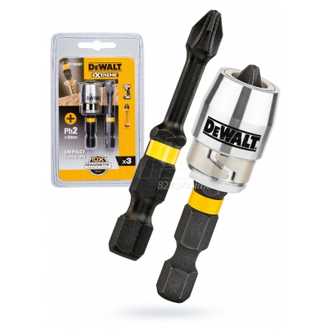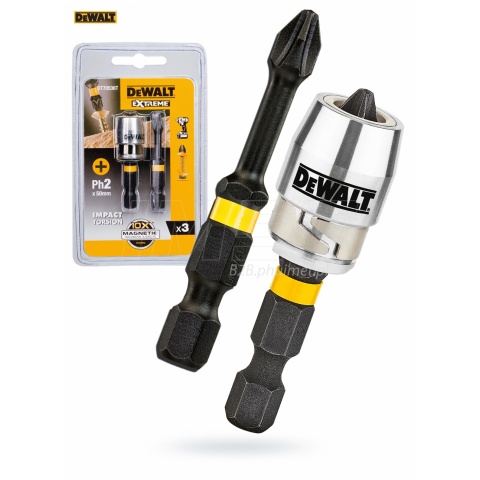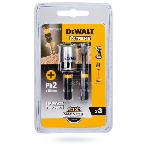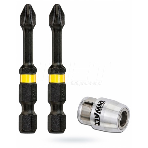 Zestaw do wkręcania: 2x bity udarowe EXTREME TORSION PH2 50 mm z uchwytem sześciokątnym 1/4" i uchwyt magnetyczny DeWALT DT70536T