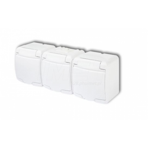 Gniazdo potrójne hermetycz (klapka biała) JUNIOR