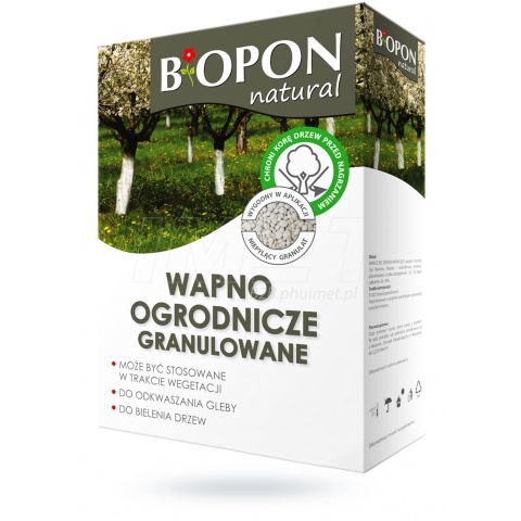 Wapno ogrodnicze w postaci wysokoreaktywnego i łatwo rozpuszczalnego w wodzie granulatu, przeznaczone zarówno do bielenia drzew, jak i do odkwaszania gleby o zbyt niskim odczynie pH. Granulowana postać preparatu powoduje, że można go stosować na terenach obsadzonych już trawą lub innymi roślinami. Preparat skutecznie stymuluje rozwój dobroczynnej mikroflory, polepsza strukturę fizyczną gleby i aktywizuje wchłanianie azotu, fosforu, wapnia, magnezu i boru.