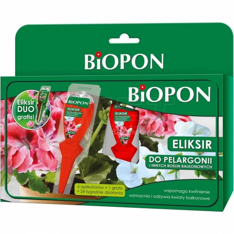 Nowoczesny i wyjątkowo wydajny nawóz mineralny, przeznaczony do pielęgnacji wszystkich odmian pelargonii. Całkowicie pokrywa zapotrzebowanie tych roślin na niezbędne składniki odżywcze. Regularnie stosowany wspomaga tworzenie i rozwój pąków, przedłuża okres kwitnienia oraz zapewnia intensywną barwę kwiatów i liści. Gęsta konsystencja rozpuszczalnego w wodzie żelu sprawia, że nawóz jest łatwo przyswajalny przez rośliny i wygodny w użyciu. Nie rozpryskuje się przy nalewaniu i umożliwia precyzyjne dozowanie.