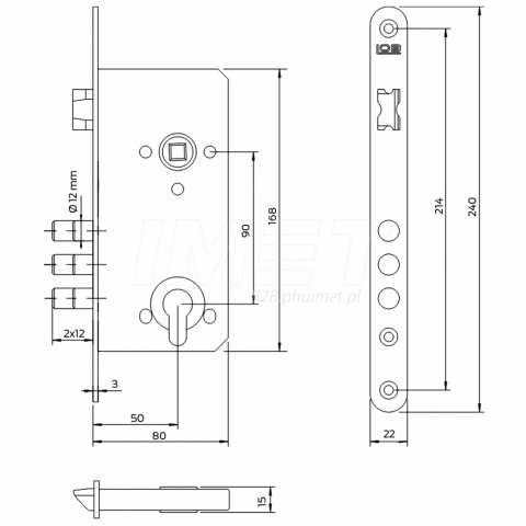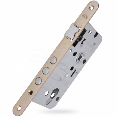 | Zamek przeznaczony do montowania w typowych drzwiach wejściowych, najczęściej jako zamek dodatkowy. Dostosowany do współpracy z typowymi wkładkami bębenkowymi. Jest wyposażony w 3 bolce ryglujące o średnicy 12mm. |