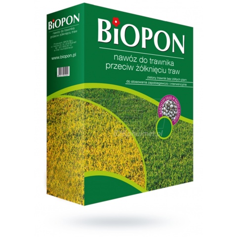 Nawóz do trawnika zapobiegający żółknięciu traw, spowodowanemu niedoborem składników mineralnych, zwłaszcza żelaza.