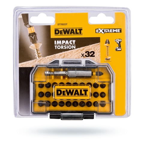 Zestaw bitów udarowych amerykańskiego producenta DeWalt idealnie nada się dla każdego użytkownika. Zestaw zawiera 32 części, a w jego skład wchodzą bity typu Pozidriv, Philips, Torx i płaskie. Ponadto w pudełku znajduje się uchwyt magnetyczny, wydłużający długość roboczą. Zestaw znajduje się w kasetce z tworzywa sztucznego. Kasetka posiada wygodny i praktyczny uchwyt na pasek.