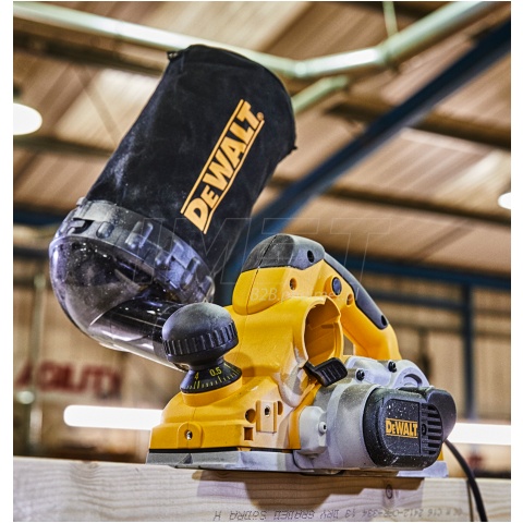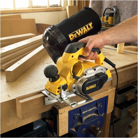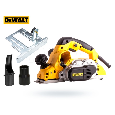 Profesjonalny strug elektryczny DeWALT model D26500, z silnikiem 1050W, prowadnicami i nożami z węglikami spiekanymi, o szerokości strugania 82mm, pakowany w karton.