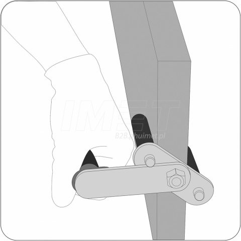 Sposób użycia Umieścić krawędź płyty między trzpieniami uchwytu, unieść do góry trzymając za rękojeść. Trzpienie zacisną się z obu stron płyty umożliwiając jej podniesienie.