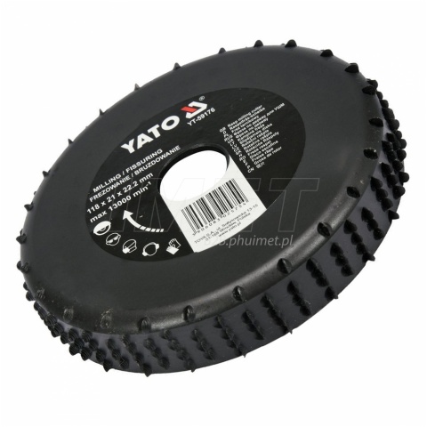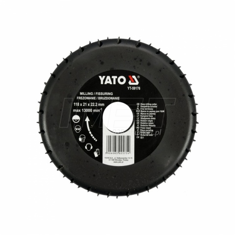 Frez tarnikowy 118mm YT-59176 przeznaczony do obróbki drewna, betonu komórkowego, tworzywa sztucznego, gipsu, płyty gipsowo-kartonowe. Tarcza znajdzie swoje zastosowanie podczas szlifowania, frezowania, bruzdowania, załamywania krawędzi, dopasowywania i oczyszczania.