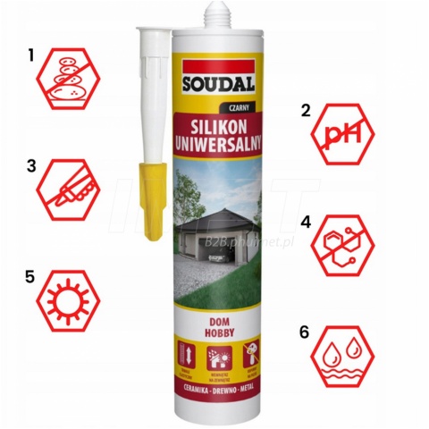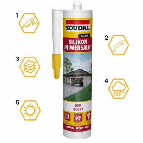 - Uniwersalny silikon SOUDAL o utwardzaniu kwaśnym czarny 280 ml