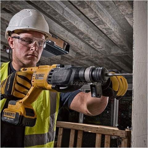 Młotowiertarka akumulatorowa DeWalt DCH133 to wielofunkcyjne urządzenie z silnikiem bezszczotkowym. Posiada możliwość wiercenia tradycyjnego, udarowego i całkowitego wyłączenia obrotów i używania jej do podkuwania. Narzędzie idealnie się sprawdza w rękach zarówno profesjonalistów, jak i majsterkowiczów podczas różnego rodzaju prac remontowo-budowlanych. Akumulatorowe zasilanie młotowiertarki sprawia, że urządzenie nie ma kabla zasilającego, więc nie wymaga stałego podłączenia do prądu, dzięki czemu narzędzie jest mobilne i może być użyte zawsze i wszędzie. Producent zapewnia o najniższym w swojej klasie poziomie wibracji co zwiększa bezpieczeństwo i komfort pracy i sprawia, że użytkownik może wydłużyć czas pracy ciągłej.