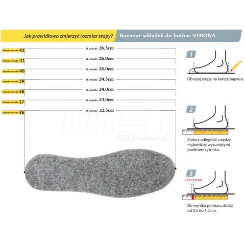 | Obuwie zawodowe, wodochronne - model VERONA 53011, zostały wykonane z lekkiego tworzywa EVA. Tworzywo EVA, dzięki swojej lekkości gwarantuje większą wygodę podczas użytkowania w porównaniu do odpowiedników wykonanych z gumy. Buty Verona 53011 wyposażono w amortyzujący wstrząsy system Shock Absorber, który zwiększa komfort użytkowania i zapobiega odbiciu pięt. Dzięki zastosowaniu wzmocnienia w przedniej części oraz tylnej buta (pięta, czubek), pełni ono również funkcję ochronną. Podeszwa buta 53011 została wyposażona specjalnej konstrukcji protektor (SRC) ,który zwiększa antypoślizgowość podeszwy. Wysoki stopień termoizolacji obuwia zapewniają pęcherzyki powietrza znajdujące się w materiale z którego zostały wykonane. Materiał utrzymuje ciepło wewnątrz buta, gdy na zewnątrz jest zimno. Lekkie kalosze EVA dzięki dużej elastyczności (do -30°C) dopasowują się do ruchu stóp dzięki czemu zapewniają pełną swobodę ruchu podczas użytkowania. Kalosze EVA VERONA wyposażone są w wyjmowany ocieplacz. Trójwarstwowy, higieniczny ocieplacz posiada warstwę stabilizującą wkład w obuwiu. |