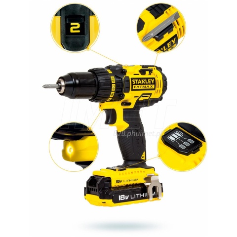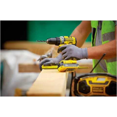 Wiertarko-wkrętarka STANLEY FATMAX 18 V dostarczana z dwoma akumulatorami Li-Ion o pojemności 2.0 Ah Kompaktowa, lekka konstrukcja umożliwia pracę w ciasnych przestrzeniach 24-pozycyjne ustawianie momentu obrotowego dla efektywnego wkręcania różnych rozmiarów wkrętów w różnego rodzaju materiały 2 biegi dla zapewnienia wykonania większości prac Obroty w prawo i w lewo Kompaktowy i szybkozaciskowy, jednotulejowy uchwyt wiertarski 13 mm z automatyczną blokadą wrzeciona dla szybkiej wymiany akcesoriów jedną ręką Ergonomiczny, ogumowany uchwyt zwiększa komfort użytkownika Dioda LED dla lepszej widoczności podczas wykonywania zadań Stalowy zaczep do paska i silny, magnetyczny uchwyt do bitów zapewnia dodatkową wygodę