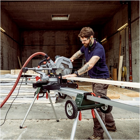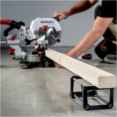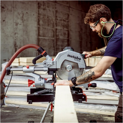 Pilarka ukośnica 305mm Metabo KGS 305 M (613305000) to najnowsza wersja bardzo dobrze znanej ukośnicy dostępnej na rynku. Konstrukcja została przeprojektowana, aby zwiększyć jej wydajność. Najważniejszą zmianą jest zastosowanie diody LED do wyznaczania linii cięcia, zamiast tradycyjnego lasera. Dioda oświetla tarczę, która rzuca cień na materiał, precyzyjnie wyznaczając linię cięcia. Dzięki temu rozwiązaniu ukośnica nie wymaga dodatkowej regulacji linii cięcia.