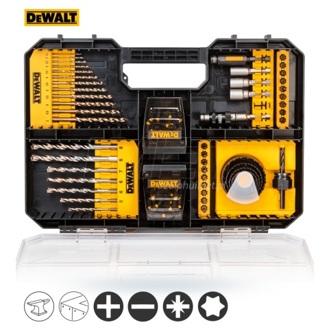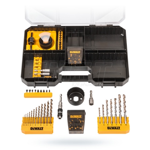 -Piły otwornicowe do wkrętarek: 54mm, 44mm, 38mm, 32mm -Wiertła do metalu DeWalt Extreme Wiertła do metalu HSS-G DIN 338: 1.5 ; 2 ; 2.5 ; 3 ; 3.5 ; 4 ; 4.5 ; 5 ; 5.5 ; 6 ; 6.5 ; 7 ( 12el.) -Wiertła do betonu DeWalt Extreme: 4 , 5 , 6 , 6 , 7 , 8 , 8 ( 7el.) |