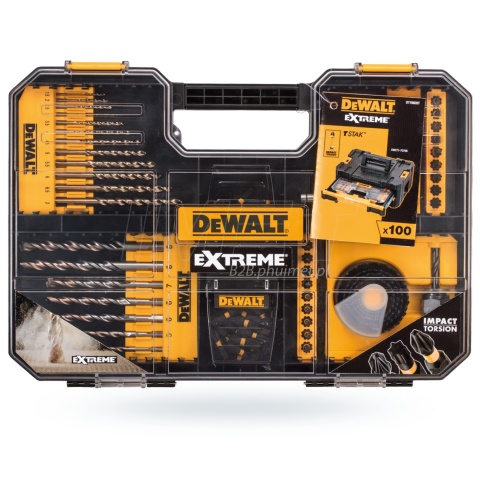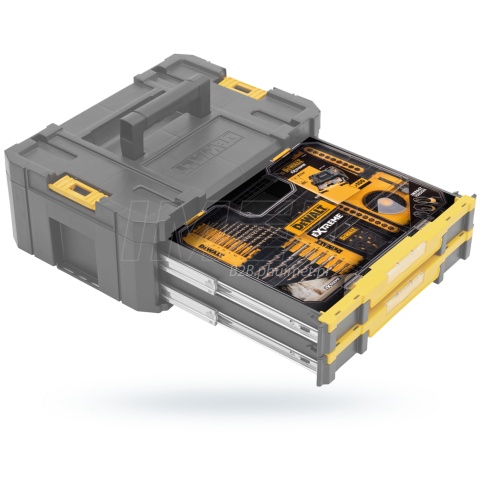 | Produkt DT70620T, można stosować jako zamienna szuflada do walizki TSTAK IV. W skład zestawu wchodzi 100 elementów. Można tu znaleźć: