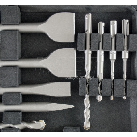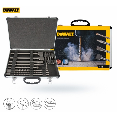 + DeWALT DT9679 zestaw wierteł i dłut SDS+ 15 części | Praktyczny zestaw DeWALT DT9679 wierteł udarowych i dłut z uchwytem SDS+ kompatybilnych ze wszystkimi młotowiertarkami SDS+. Zestaw zawiera 11 wierteł udarowych różnych długości najczęściej wykorzystywanych, oraz 4 dłuta różnych długościach i wielkościach, które doskonale uzupełnią zaplecze osprzętu do młotowiertarek. Zestaw cechuje zwiększona wytrzymałość na złamanie, dzięki utwardzeniu powierzchni. Wiertła marki DeWALT wyróżnia wysoka trwałość nawet przy natrafieniu na zbrojenie. Osprzęt ten posiada specjalnie zaprojektowany profil ostrza. Nowoczesna technologia zastosowana przy projektowaniu wierteł sprawia, że spirala optymalnie przenosi siły udaru i odprowadza zwierciny. Szpice wykonane zostały z utwardzanej stali, dzięki czemu cechuje je wysoka odporność na ścieranie i wszelkie odkształcenia. Zestaw wierteł i dłut zapakowany został w estetyczną aluminiową walizkę, która pozwala zachować porządek niedużych elementów, a wysokiej jakości materiał, z którego jest wykonana, chroni akcesoria przed uszkodzeniem. | | 11 wierteł | 5x110, 5,5x110, 6x110, 6x160, 7x110, 8x110, 8x160, 10x110, 10x160, 12x160, 14x210 mm | | 1 szpic | 250 mm | | 3 przecinaki | 20x250, 2x 40x250 mm | |