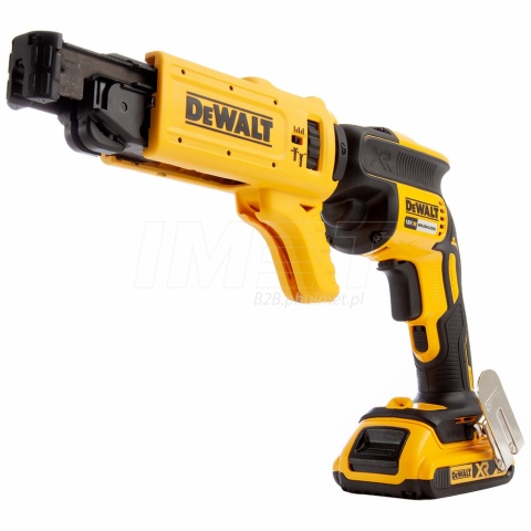 Magazynek do wkrętów na taśmie DeWALT DCF6201-XJ stanowi wszechstronne narzędzie, idealnie pasujące do wkrętarek DCF620 i DCF621, wyznaczając nowe standardy wydajności i komfortu podczas montażu płyt kartonowo-gipsowych. Dzięki ruchomemu mechanizmowi obracania magazynka, narzędzie dostarcza wyjątkowej wygody pracy w trudno dostępnych obszarach, takich jak narożniki czy ciasne przestrzenie. Konstrukcja magazynka została starannie zaprojektowana, aby sprostać wymaganiom trudnych warunków budowlanych, gwarantując niezawodność i wytrzymałość przy intensywnym użytkowaniu. Posiada mechanizm błyskawicznego zwalniania magazynka umożliwia sprawną i efektywną wymianę taśmy z wkrętami. To rozwiązanie przyspiesza pracę i podnosi produktywność. Praktyczny design magazynka ułatwia utrzymanie narzędzia w czystości, co pozwala na utrzymanie jego wydajności w doskonałym stanie. Magazynek wyposażono w prosty, ale wyjątkowo skuteczny ogranicznik głębokości osadzania wkrętów. To pozwala na dokładne i powtarzalne osadzanie wkrętów na żądaną głębokość. Należy zwrócić szczególną uwagę na wybór właściwego bitu aby uniknąć potencjalnych problemów związanych z zakleszczeniem akcesorium w uchwycie magazynka dlatego producent zaleca bity DeWALT DT7206
