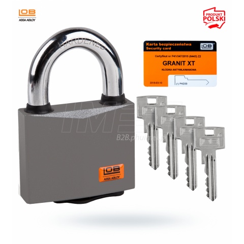 Kłódka wzmocniona GRANIT 1 XT zapewnia wysokie bezpieczeństwo chronionych obiektów. Dlatego też powinna być stosowana do ochrony pomieszczeń, w których zamykamy cenne, drogie towary. Idealnie nadaje się do zamknięcia dużych bram, garaży, furtek i solidnych krat. Posiada stalowy, hartowany pałąk z powłoką niklowo-chromową. Dzięki swojej konstrukcji kłódka jest bardzo trudna do sforsowania zarówno metodami siłowymi (przecięcie, ukręcenie), jak i próbami manipulacyjnymi (wytrychy, bumping).
